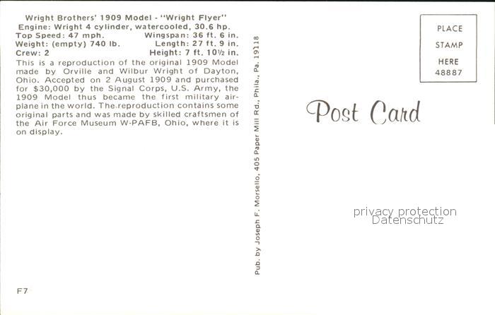 Modellbau Doppeldeckerflugzeug Wright Brother’s 1909 Model Wright Flyer postalisch nicht gelaufen Erhaltung siehe scans [PaolaD17]