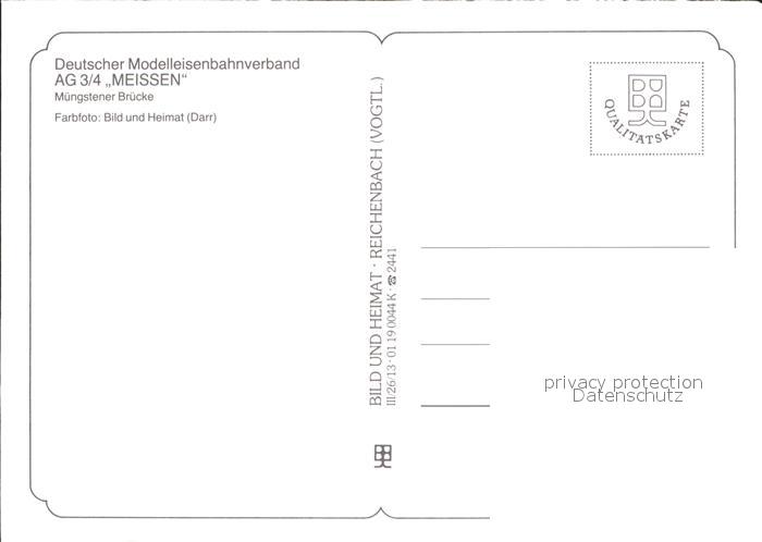 Modellbau-Eisenbahn AG 3/4 Meissen Muengstener Bruecke postalisch nicht gelaufen Erhaltung siehe scans