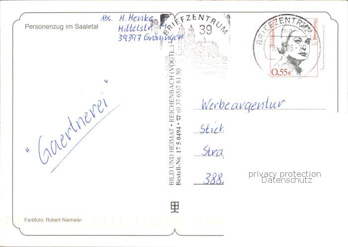 alte Postkarte Modellbau-Eisenbahn Personenzug Saaletal postalisch gelaufen Erhaltung siehe scans
