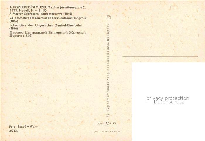 Modellbau-Eisenbahn Ungarische Zentral-Eisenbahn BETS 70 Koezlekedesi Muzeum Budapest postalisch nicht gelaufen Erhaltung siehe scans [PaolaD17]