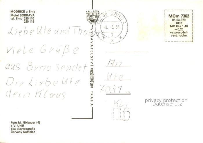 old postcard Modrice Motel Bobrava Gastraeume Bungalows postalisch gelaufen Erhaltung siehe scans [WerneD78]