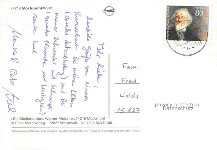 74023620 alte Postkarte Moeckmuehl Teilansichten Altstadt Stadtmauer Brunnen Skulptur postalisch gelaufen Erhaltung siehe scans [FriedD77] KatCode: 11110008125063