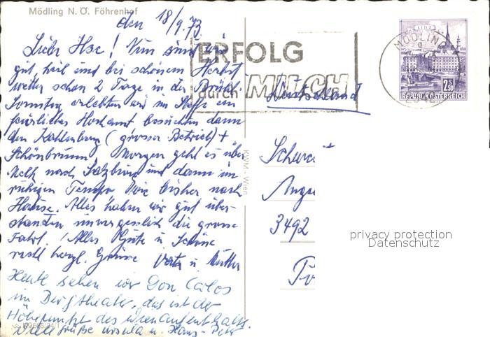 72275456 alte Postkarte Moedling Foehrenhof postalisch gelaufen Erhaltung siehe scans KatCode: 11390127031717