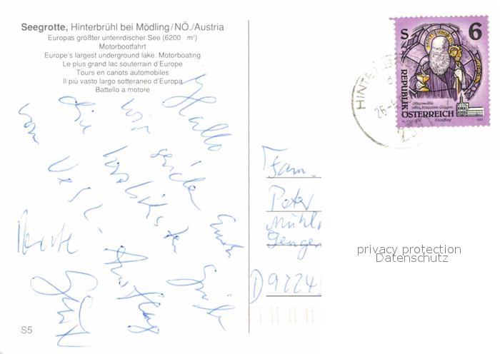 72849667 alte Postkarte Moedling Seegrotte Hinterbruehl postalisch gelaufen Erhaltung siehe scans [KathaD81] KatCode: 11390127031717