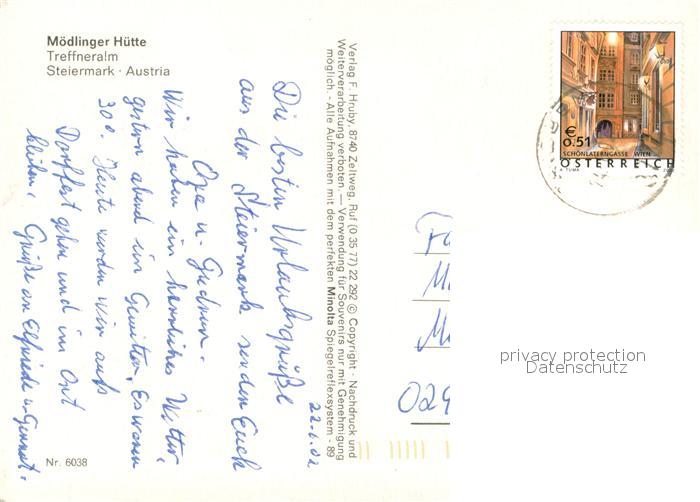 73637415 alte Postkarte Moedlingerhuette Treffneralm Bergwandern Kreuz Gebirgspanorama postalisch gelaufen Erhaltung siehe scans [FriedD77] KatCode: 11390222061219