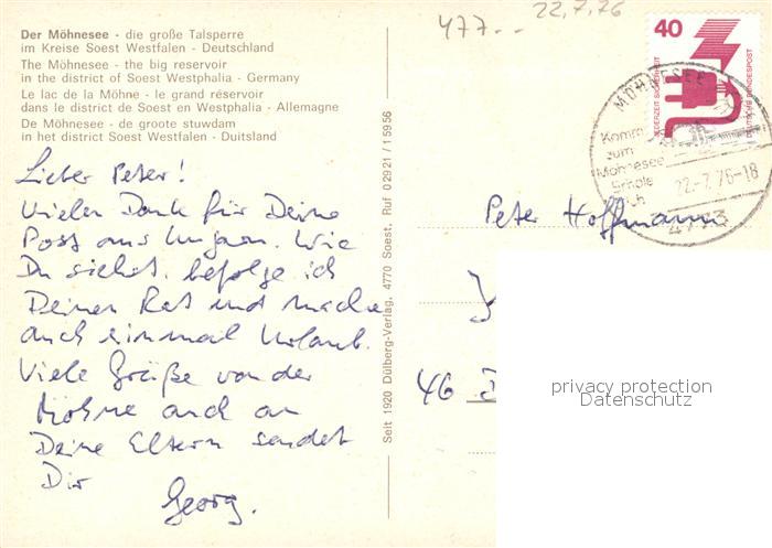 73070228 alte Postkarte Moehnesee Delecke Suedufer Wamel Koerbecke postalisch gelaufen Erhaltung siehe scans [NatalD47] KatCode: 11110005974032