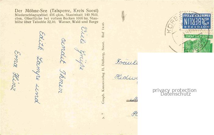 74099453 alte Postkarte Moehnesee Delecker Bruecke postalisch gelaufen Erhaltung siehe scans [WerneD78] KatCode: 11110005974032