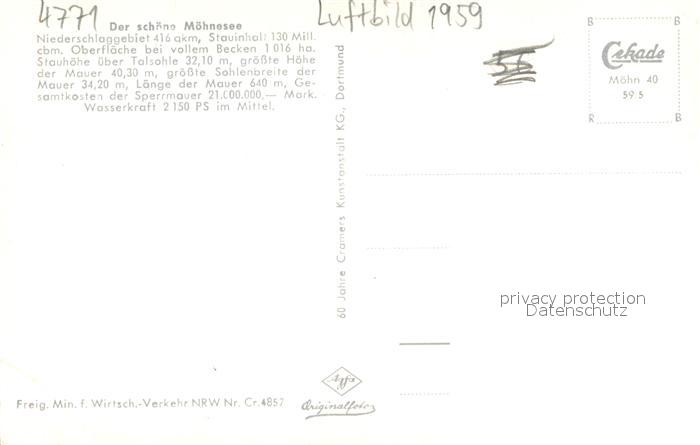73703935 Moehnesee Fliegeraufnahme Sperrmauer postalisch nicht gelaufen Erhaltung siehe scans [LiesaD40] KatCode: 11110005974032