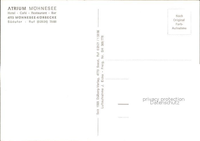 72276920 Moehnesee Koerbecke Fliegeraufnahme Atrium Moehnsee postalisch nicht gelaufen Erhaltung siehe scans KatCode: 11110005974032