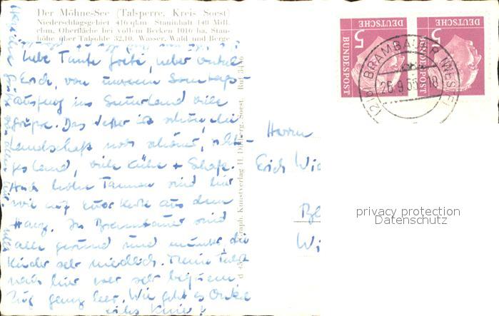 71930239 alte Postkarte Moehnesee Sperrmauer postalisch gelaufen Erhaltung siehe scans KatCode: 11110005974032