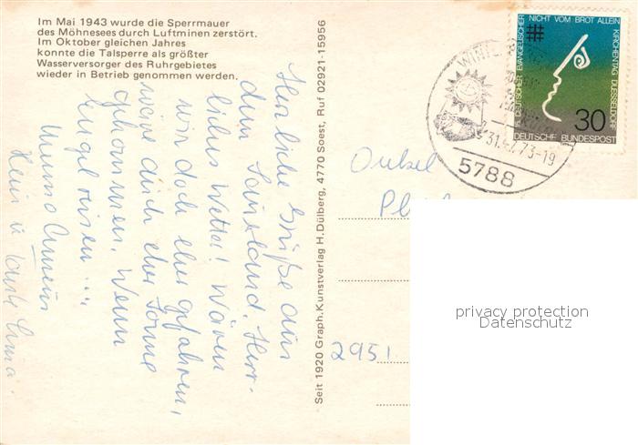 73109229 alte Postkarte Moehnesee Sperrmauer Luftminen zerstoert 1943 postalisch gelaufen Erhaltung siehe scans [KathaD81] KatCode: 11110005974032