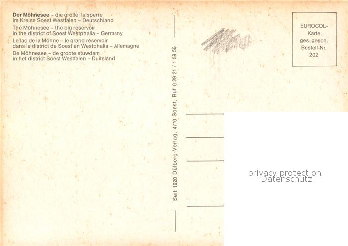 73176369 Moehnesee Sperrmauer Talsperre postalisch nicht gelaufen Erhaltung siehe scans [FriedD77] KatCode: 11110005974032