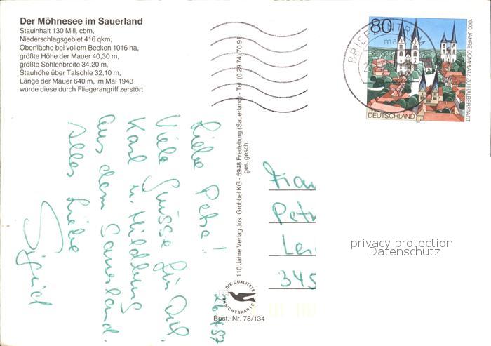 72364924 alte Postkarte Moehnesee Staumauer Durchbruch Wamel Koerbecke postalisch gelaufen Erhaltung siehe scans KatCode: 11110005974032