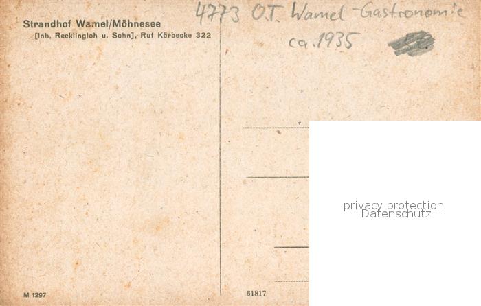 73694085 Moehnesee Strandhof Wamel postalisch nicht gelaufen Erhaltung siehe scans [WerneD78] KatCode: 11110005974032
