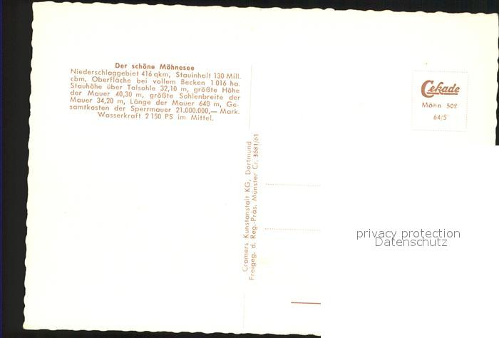 72240272 Moehnesee Talsperre Fliegeraufnahme postalisch nicht gelaufen Erhaltung siehe scans KatCode: 11110005974032