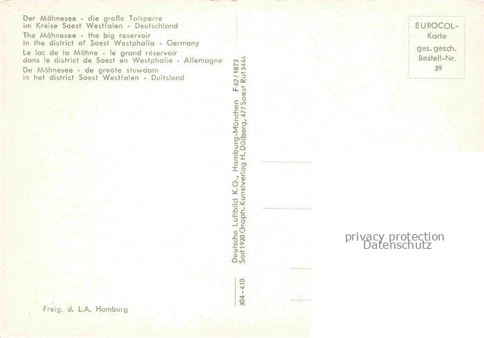 74110128 Moehnesee Talsperre Luftbild postalisch nicht gelaufen Erhaltung siehe scans [IrynaD87] KatCode: 11110005974032