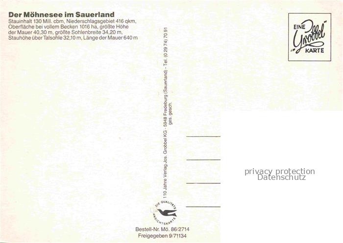 74037653 Moehnesee und Umgebung postalisch nicht gelaufen Fliegeraufnahme Erhaltung siehe scans [FriedD77] KatCode: 11110005974032