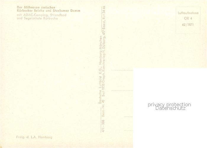 73836189 Moehnesee zwischen Koerbecker Bruecke und Stockumer Damm mit ADAC Campingplatz Fliegeraufnahme postalisch nicht gelaufen Erhaltung siehe scans [WerneD78] KatCode: 11110005974032