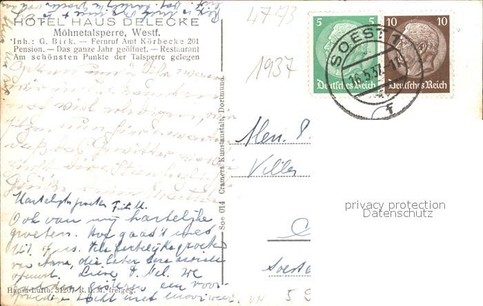 31734661 alte Postkarte Moehnetalsperre Haus Delecke Fliegeraufnahme postalisch gelaufen Erhaltung siehe scans KatCode: 11110005958044