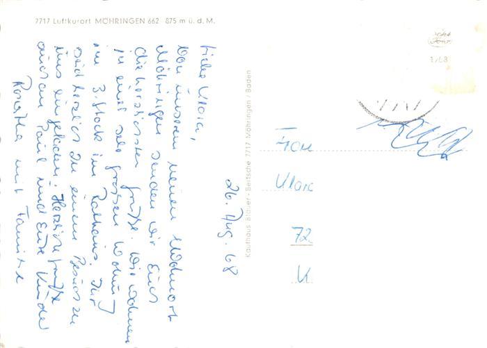 73878635 alte Postkarte Moehringen Tuttlingen Panorama Schule Rathaus Vorstadt Luftkurort an der Donauversickerung postalisch gelaufen Erhaltung siehe scans [FriedD77] KatCode: 11110008327050