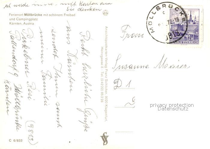 73516632 alte Postkarte Moellbruecke Gesamtansicht mit Alpenpanorama Freibad postalisch gelaufen Erhaltung siehe scans [FriedD77] KatCode: 11390212020643