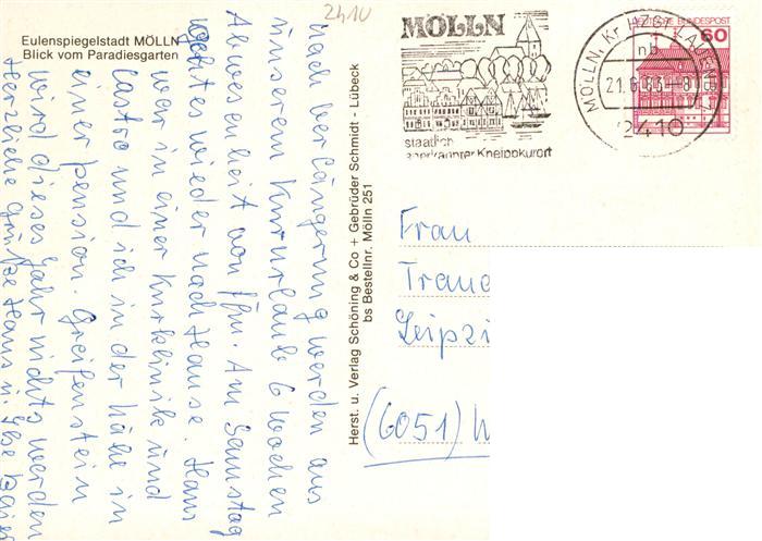 73949558 alte Postkarte Moelln Lauenburg Blick vom Paradiesgarten postalisch gelaufen Erhaltung siehe scans [WerneD78] KatCode: 11110001053090