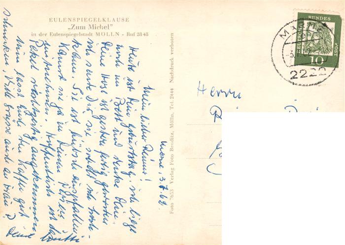 73880482 alte Postkarte Moelln Lauenburg Eulenspiegelklause Zum Michel postalisch gelaufen Erhaltung siehe scans [WerneD78] KatCode: 11110001053090