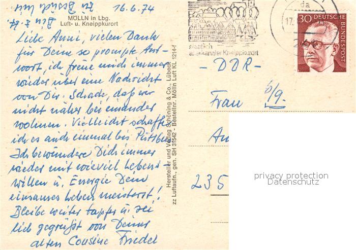 73124613 alte Postkarte Moelln Lauenburg Fliegeraufnahme postalisch gelaufen Erhaltung siehe scans [NatalD47] KatCode: 11110001053090