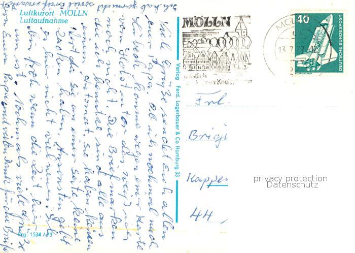 73031331 alte Postkarte Moelln Lauenburg Fliegeraufnahme postalisch gelaufen Erhaltung siehe scans [KathaD81] KatCode: 11110001053090