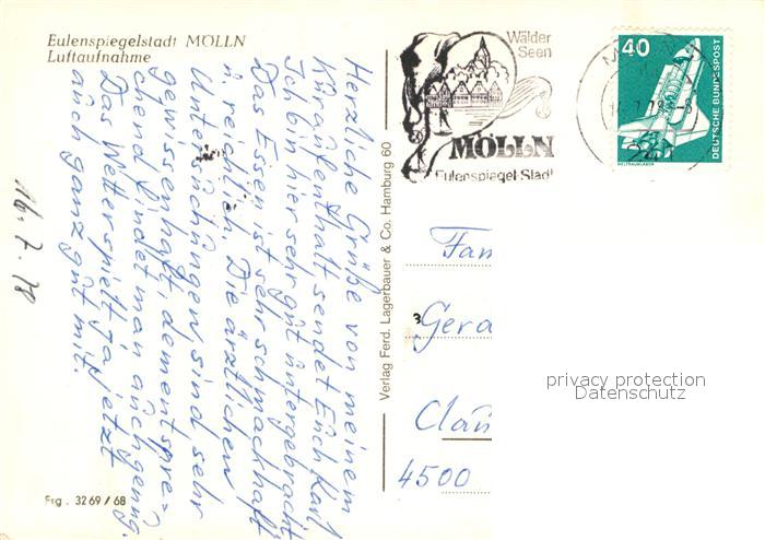 73016394 alte Postkarte Moelln Lauenburg Fliegeraufnahme postalisch gelaufen Erhaltung siehe scans [NatalD47] KatCode: 11110001053090