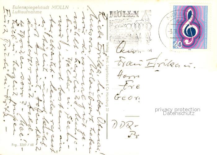 72974080 alte Postkarte Moelln Lauenburg Fliegeraufnahme postalisch gelaufen Erhaltung siehe scans [PaolaD17] KatCode: 11110001053090