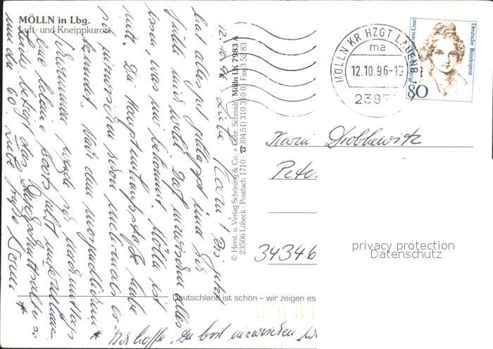 72460705 alte Postkarte Moelln Lauenburg Fliegeraufnahme postalisch gelaufen Erhaltung siehe scans KatCode: 11110001053090