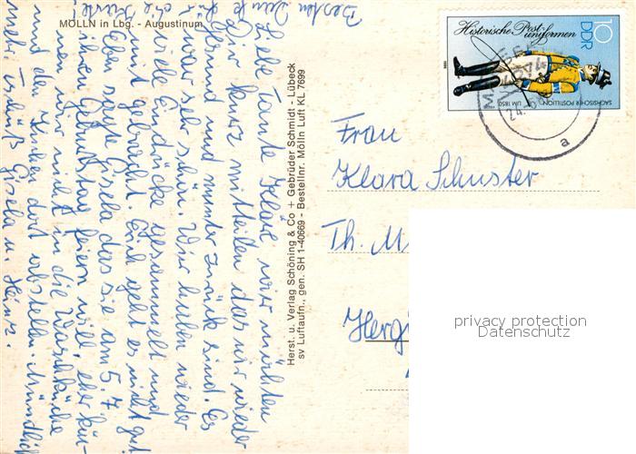 72987588 alte Postkarte Moelln Lauenburg Fliegeraufnahme Augustinum postalisch gelaufen Erhaltung siehe scans [LiesaD40] KatCode: 11110001053090