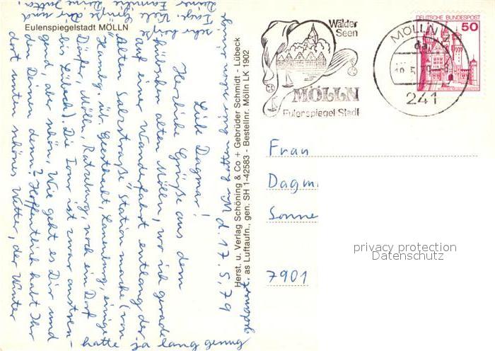 72981620 alte Postkarte Moelln Lauenburg Fliegeraufnahme Eulenspiegelstadt postalisch gelaufen Erhaltung siehe scans [LiesaD40] KatCode: 11110001053090