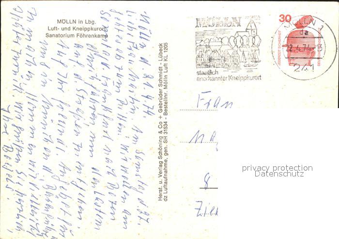 72610611 alte Postkarte Moelln Lauenburg Fliegeraufnahme Sanatorium Foehrenkamp postalisch gelaufen Erhaltung siehe scans [AndreD76] KatCode: 11110001053090