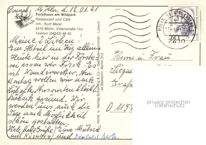73776049 alte Postkarte Moelln Lauenburg Forsthaus am Wildpark Gastraeume postalisch gelaufen Erhaltung siehe scans [WerneD78] KatCode: 11110001053090