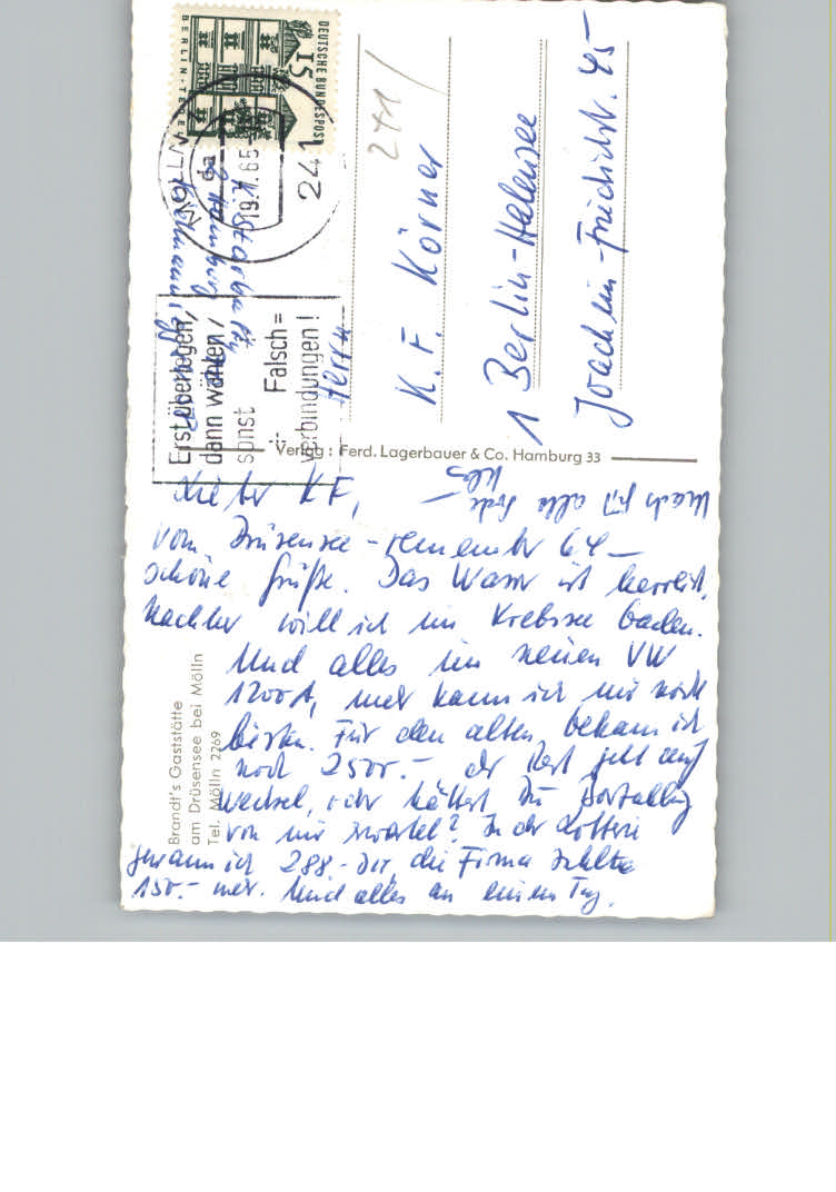 31121950 Moelln Lauenburg Gaststaette a. Druesensee postalisch nicht gelaufen KatCode: 11110001053090