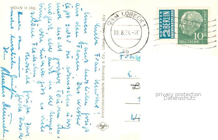 73725793 alte Postkarte Moelln Lauenburg Gesamtansicht postalisch gelaufen Erhaltung siehe scans [LiesaD40] KatCode: 11110001053090