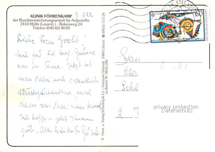 72962818 alte Postkarte Moelln Lauenburg Klinik Foehrenkamp postalisch gelaufen Erhaltung siehe scans [WerneD78] KatCode: 11110001053090