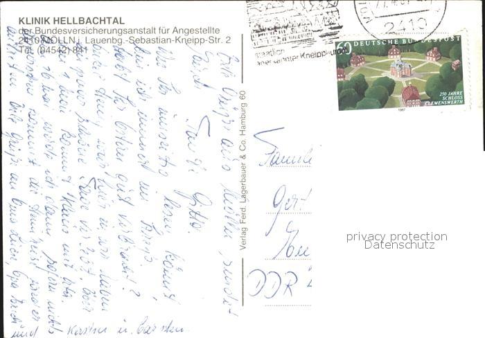 72456257 alte Postkarte Moelln Lauenburg Klinik Hellbachtal Ein Kurgast hat es meist sehr schwer postalisch gelaufen Erhaltung siehe scans KatCode: 11110001053090