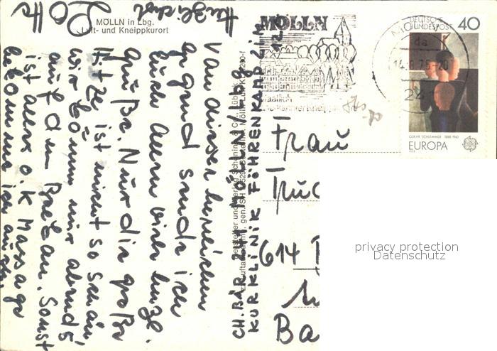 72600623 alte Postkarte Moelln Lauenburg Kneipp Luftkurort Naturpark Lauenburgische Seen Fliegeraufnahme postalisch gelaufen Erhaltung siehe scans [FriedD77] KatCode: 11110001053090