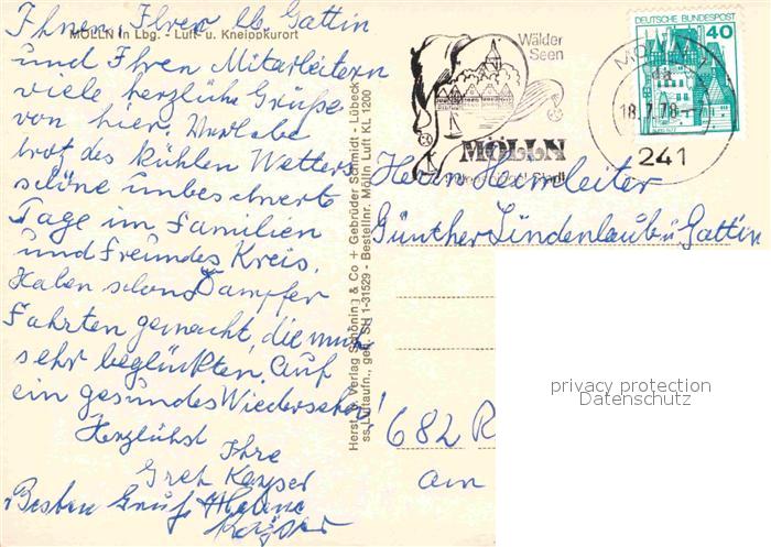 72795701 alte Postkarte Moelln Lauenburg Kurort Naturpark Lauenburgische Seen Fliegeraufnahme postalisch gelaufen Erhaltung siehe scans [FriedD77] KatCode: 11110001053090