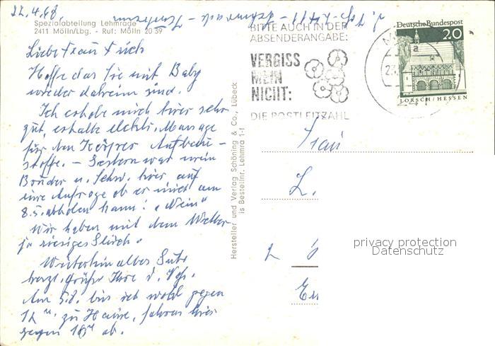 72298992 alte Postkarte Moelln Lauenburg Lehmrade postalisch gelaufen Erhaltung siehe scans KatCode: 11110001053090