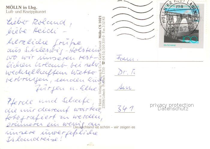 73228460 alte Postkarte Moelln Lauenburg Luft- und Kneippkurort Naturpark Lauenburgische Seen Fliegeraufnahme postalisch gelaufen Erhaltung siehe scans [FriedD77] KatCode: 11110001053090