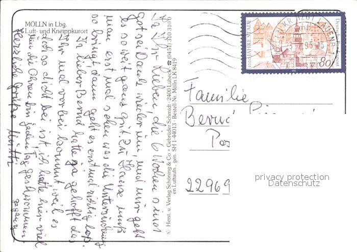 72580249 alte Postkarte Moelln Lauenburg Luftaufnahme postalisch gelaufen Erhaltung siehe scans [KathaD79] KatCode: 11110001053090