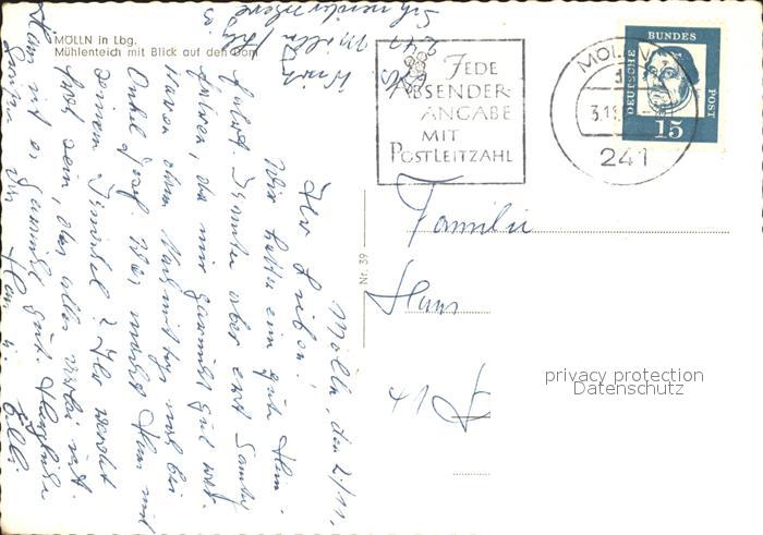 72200926 alte Postkarte Moelln Lauenburg Muehlenteich mit Domblick postalisch gelaufen Erhaltung siehe scans KatCode: 11110001053090