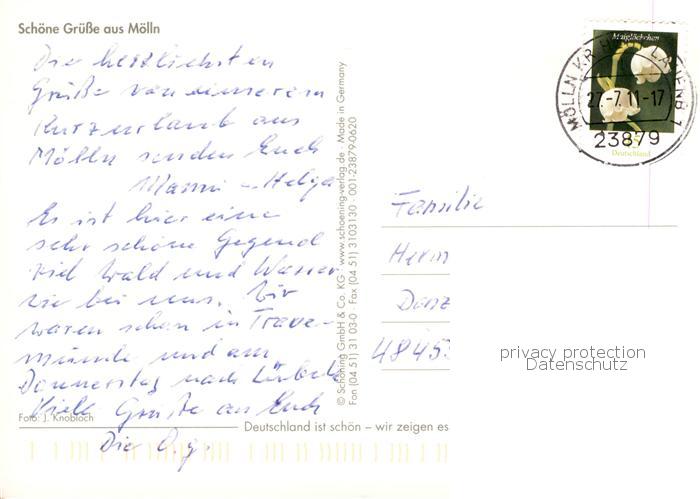 73791140 alte Postkarte Moelln Lauenburg Panorama Naturpark Lauenburgische Seen postalisch gelaufen Fliegeraufnahme Erhaltung siehe scans [FriedD77] KatCode: 11110001053090