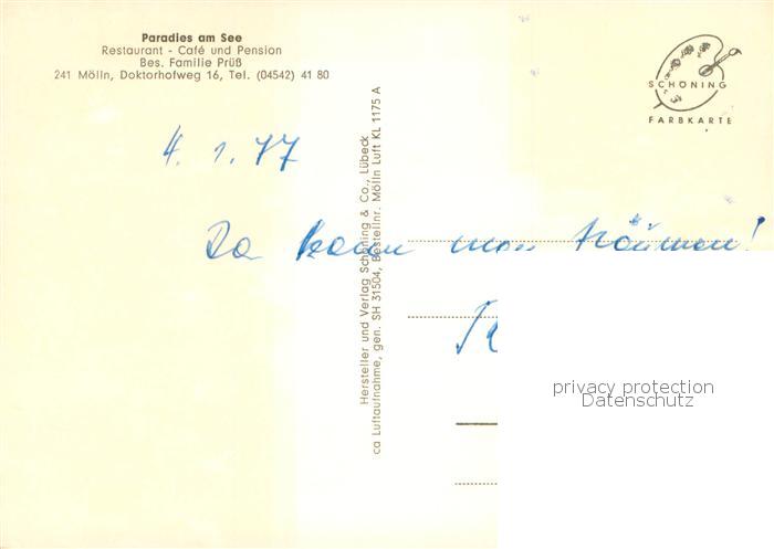 73781284 Moelln Lauenburg Paradies am See Fliegeraufnahme postalisch nicht gelaufen Erhaltung siehe scans [FriedD77] KatCode: 11110001053090