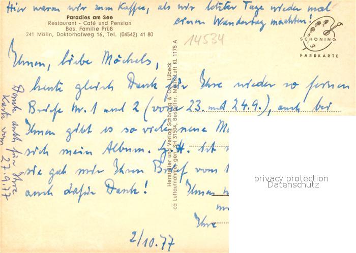73540271 Moelln Lauenburg Paradies am See Restaurant Fliegeraufnahme postalisch nicht gelaufen Erhaltung siehe scans [WerneD78] KatCode: 11110001053090