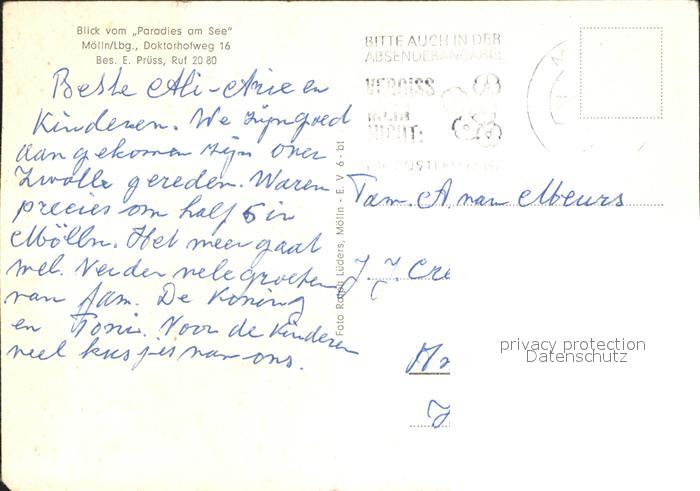 72246250 alte Postkarte Moelln Lauenburg Paradies am See postalisch gelaufen Erhaltung siehe scans KatCode: 11110001053090